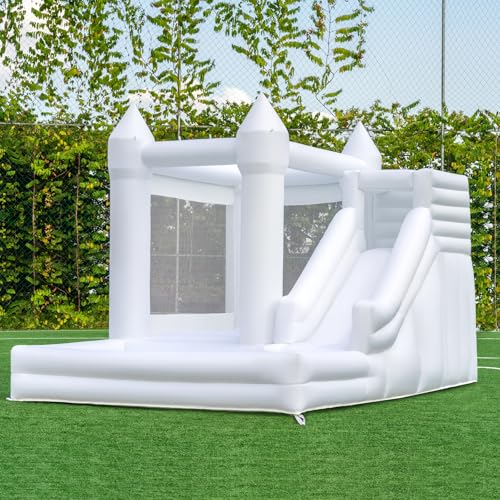 Specification: 12FTx8.5FT Oxford Bounce House Medium to Large White Bounce House Inflatable Castle with Slide and Ball Pool Suitable for Active Kids The Perfect Product for Party/Festival Decoration and Photography