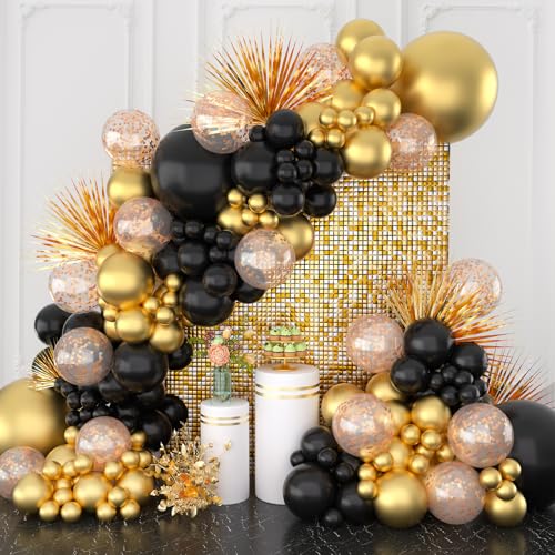 Specification: 135pcs Black and Gold Balloons Arch Kit and Gold Confetti Balloons for Birthday Decorations Thanksgiving Christmas Graduation Retirement Party Anniversary Disco New Year’s Celebrations Decoration
