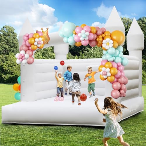 Specification: 14FT PVC White Bounce House, Inflatable Bouncer for Kids, 3 in 1 Jumper Bounce House Bouncy Castle for Kids, Indoor & Outdoor, Party, with 750W Blower, Balloon, 2 Basketball Set (White, 14FT)