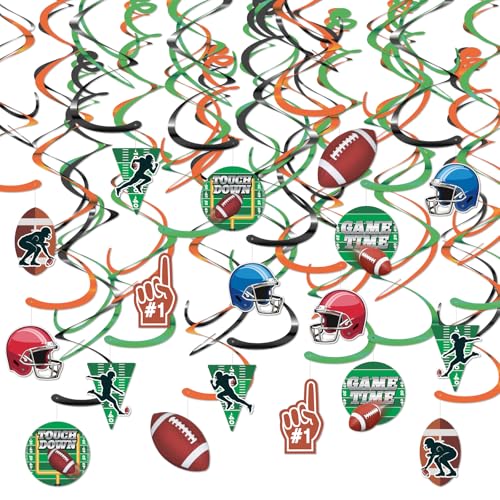 Specification: 18-Piece Football Hanging Swirl Decorations – Double Swirls with Touchdown, Helmets, and Game Time Danglers for Game Day, Superbowl, Tailgate and Sports Party Décor