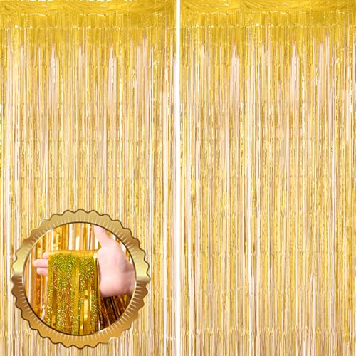 Specification: 2 Pack Laser Gold Tinsel Foil Fringe Curtains, Gold Party Decorations, Metallic Tinsel Party Streamers Backdrop for Birthday Baby Shower Graduation Wedding New Years Party Decorations