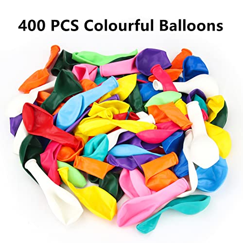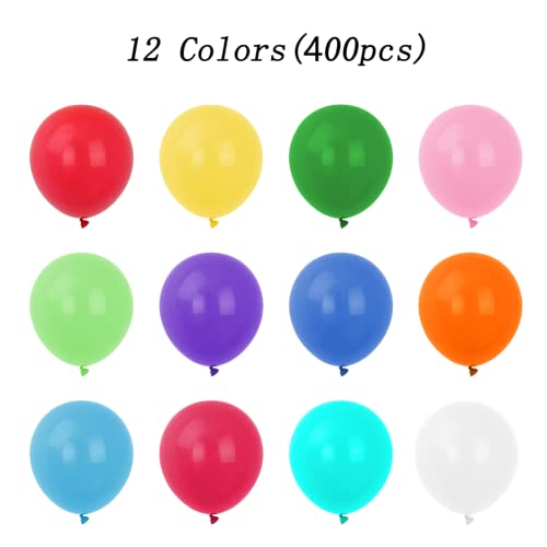 12 Inch Rainbow Balloons: 400 pcs assorted colors balloons, has red, rose red, pink, yellow, orange, dark blue, light blue, teal blue, fruit green, dark green, purple, white a total of 12 colors enough to meet your party needs.