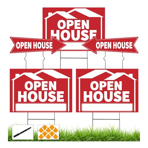 Specification: 5 Pack Open House Signs, Open House Sign for Real Estate – 17″x12″ Double Sided Yard Signs with Metal Stakes & Directional Arrows, Weatherproof Real Estate Signage for Agents, Property Sales (Red)