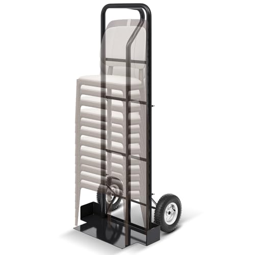 Specification: 52” x 22” x 18” Heavy Duty Stack Chair Dolly Banquet Chair Dolly Cart Holds 7 Chairs Oversized Rubber Wheels for Easy to Load and Unload for Party Event Rental Furniture (Black)
