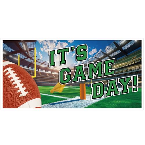 Elevate Your Game Day Celebration: Transform your space into the ultimate fan zone with our vibrant Football Banner. for any football party supplies need, this 65″ x 32.7″ multicolor banner boldly declares “It’s Game Day!” against a dynamic football field background, promising to captivate guests and boost your party atmosphere.