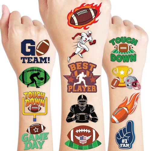 Specification: 96 PCS Football Sports Pre-Cut Temporary Tattoos for Kids | Super Cute Football Themed Birthday Party Favors, Supplies, Decorations, Fake Tattoo Stickers (Multiple)