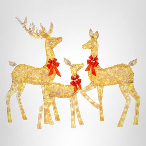 Best Choice Products 3-Piece Large Lighted Christmas Deer Family Set 5Ft Outdoor Yard Decoration with 360 LED Lights, Stakes, Zip Ties – Gold
