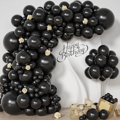 Black Balloons Arch Kit -129pcs Different Sizes 18, 12, 10, 5inches Black Balloons Garland Kit for Graduation Halloween Anniversary Birthday Baby Shower Gender Reveal Wedding Party Decorations