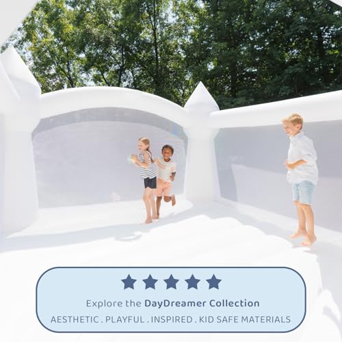 ![Bounceland Party Castle Daydreamer Cloud Bounce House [No Blower], 16.4 ft L x 13.1 ft W x 9.3 ft H, Basketball Hoop, Trendy Neutral Color, Fun Slide & Large Bounce Area, Castle Theme for Kids - Image 3](https://m.media-amazon.com/images/I/51cGcF-26aL.jpg)