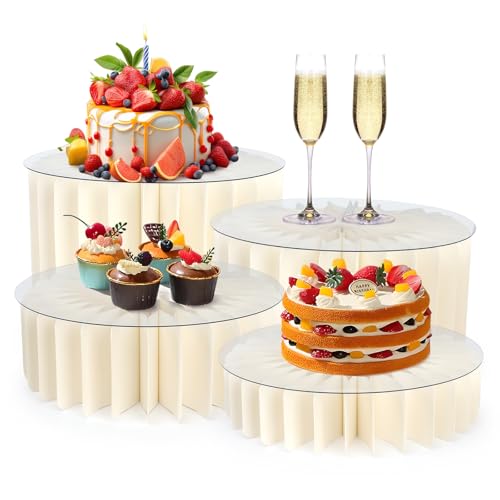 Super Load-bearing – Crafted from high-density cardboard and a thick clear acrylic plate. The honeycomb structure enables cake pedestal stand to support up to 150 lbs—stable enough for platters and bowls with food. Reusable and perfect for long-term use and commercial product displays.
