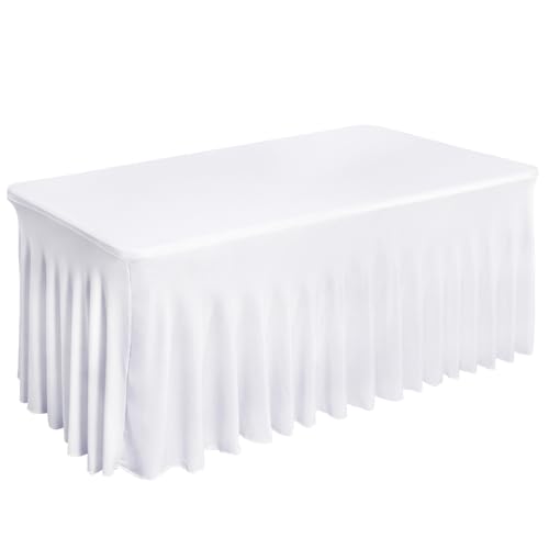 Fixwal Table Skirt, White Table Cloths for Rectangle Tables, Desk Skirt for 6 Foot Tables, White Spandex Table Covers for Folding Table