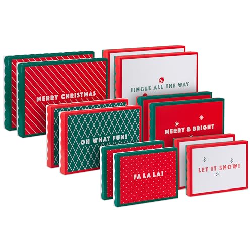 Hallmark Red and Green Christmas Gift Box Assortment (12 Boxes with Scalloped Lids: 4 Small, 4 Medium, 4 Large) for Ties, Socks, Shirts, Sweaters