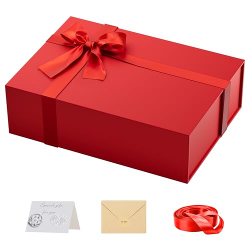HongCai printing Red Gift box for Presents with Lids: 11×8×3.5 Inches Packaging with Magnetic Lid – Holds Christmas Wedding Birthday Gifts – Ideal for Couples Friends Family