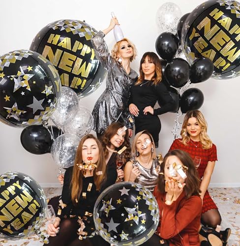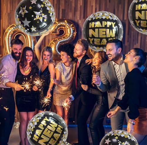 Specification: KALOR 22 Inch Happy New Year Mylar Balloons, 10 Pcs Large 4D Giant Round Foil Balloon Metallic Balloons for Happy New Year Decorations 2024
