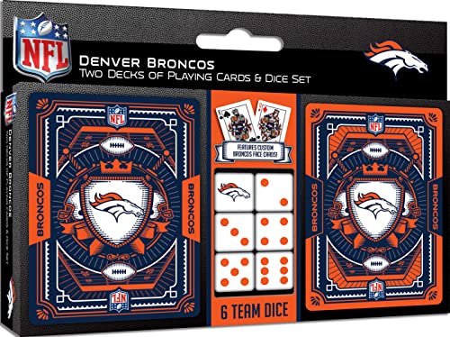 Masterpieces Game Day – NFL Denver Broncos 2-Pack Playing Cards & Dice Pack – Officially Licensed Set for Adults and Family