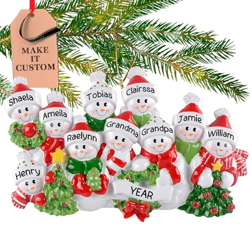 Specification: Personalized Large Family of 10 Ornament 2025 | Free 24h Customization | Laser Engraved Snowman Christmas Ornaments for Tree | Custom Gift Wrapped Festive Holiday Keepsake for Ten Persons