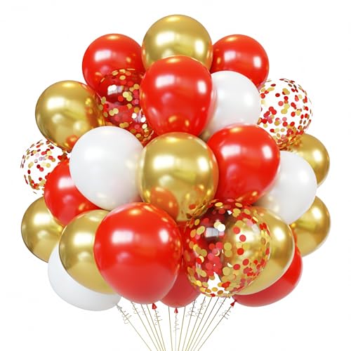 Specification: Red White Gold Latex Balloons, 50pcs 12 Inches Red White Gold and Gold Confetti Balloons with 1 Ribbon for Christmas, Birthday, Engagement, Anniversary,Valentines Party Decorations