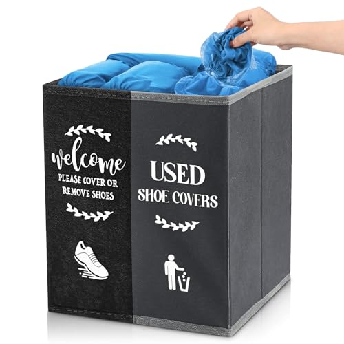 Specification: Shoe Cover Box Dispenser Foldable Storage Bin Holder with Used Shoe Covers and Welcome Please or Remove Sign for Open House Supplies (Black, Gray)