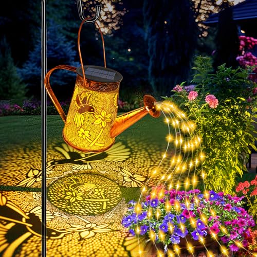 Perfect Decoration: The watering can light adds an enchanting touch to your garden, patio, or outdoor nights. The warm yellow glow flows like a cascade of sparkling stars, creating intricate patterns on the ground. Its elegant and vintage design infuses a romantic atmosphere into your surroundings, bringing magical charm and vitality to your garden, terrace, lawn, or yard after dark.