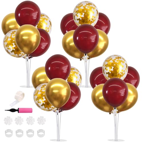 TONIFUL 4 Set Burgundy Red Gold Balloon Centerpieces for Table,Balloon Stand Kit for Graduation Decorations 2025,Christmas Party Decoration,New Year’s Eve,Anniversary,Thanksgiving,Birthday Decorations