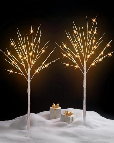 Specification: TW SHINE 2 Pack Lighted Birch Tree, 4 FT Total 96 LED Pre-lit Artificial Christmas Trees for Thanksgiving Christmas Decorations Indoor Outdoor Home Festival Wedding Party, Warm White