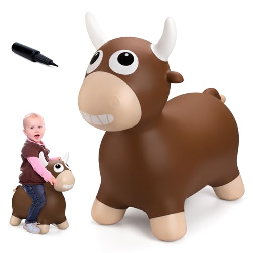 IDEAL GIFT FOR KIDS: This brown bull bouncer, an exciting twist on the traditional bouncy cow hopper, comes with an easy-to-use hand pump, making it the perfect gift for birthdays, Christmas,holidays, or special occasions.
