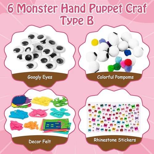 WATINC 6Pcs Hand Puppet Making Kit for Kids, Art Craft Felt Sock Puppet Toys, Creative DIY Make Your Own Puppets
