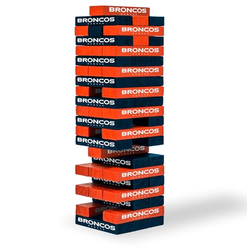 Wild Sports NFL Licensed Tabletop Stackers Tower-Building Block Game – 54pcs Wooden Block Stacking Games – Classic Family Games & Party Games for Rec Room, Game Room & NFL Games Tailgate Party